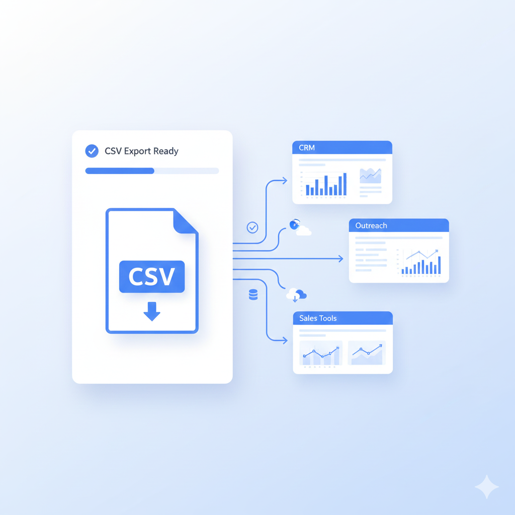 Clean CSV format with all fields mapped. One-click import to HubSpot, Salesforce, or any CRM.