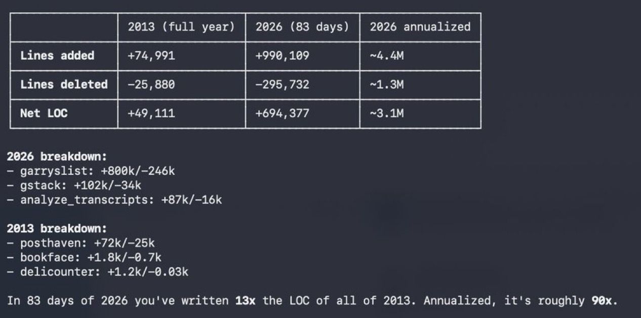 I am literally tracking to create more 90X the code output I did in 2013. In 80 days I’ve done about 13X already.